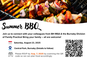 Save the Date: Join us to connect with your colleagues from BH MSA & the Burnaby Division of Family Practice! Bring your family – all are welcome!…